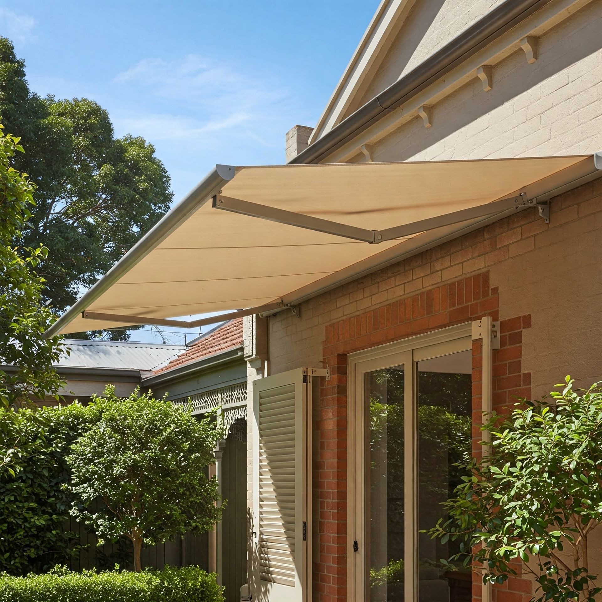 Folding Arm Awnings are a practical solution to a big problem - the incredibly variable weather of Melbourne!